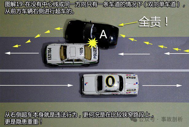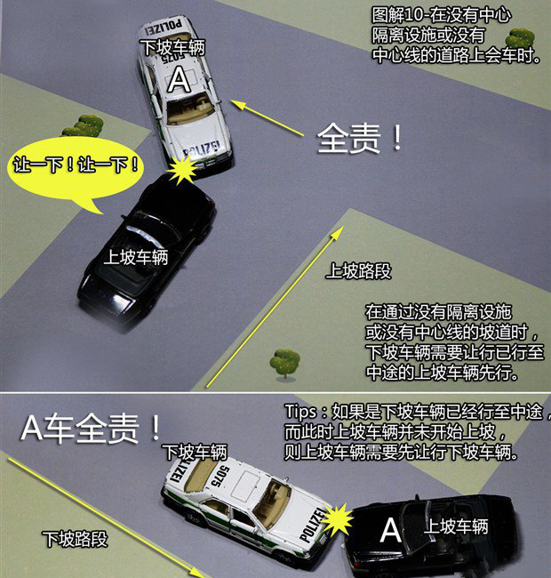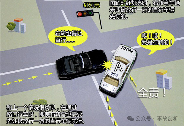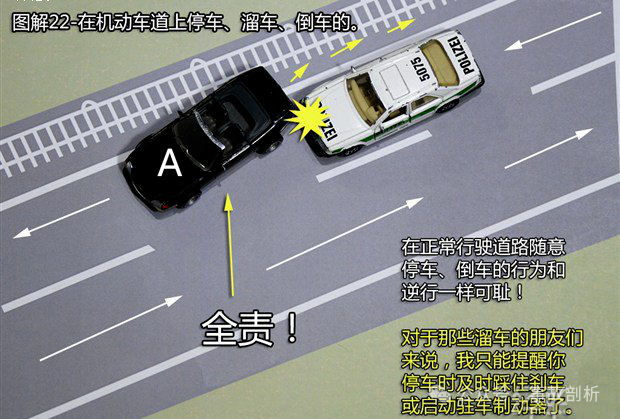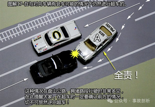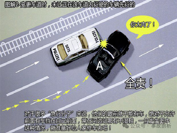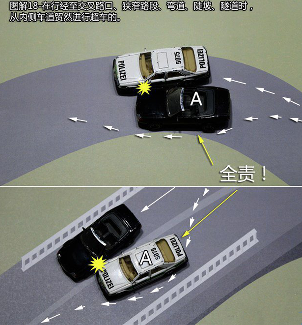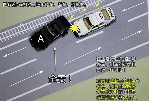 首页 > 交通法务 > 当前 这21种轻微交通事故承担全责!赶紧收藏起来吧![交通事故] 2024-11-29 12:25:35 来源于: http://www.claw8.cn/ 行车上路 碰碰刮刮是在所难免的 那么,发生事故后 责任到底该如何划分呢? 下面这21种轻微交通事故承担全责▼ 1、追撞前车尾部的情况 【法律依据】:事故责任认定的法律依据为《道路交通安全法》 第四十三条“同车道行驶的机动车,后车应当与前车保持足以采取紧急制动措施的安全距离”之规定。 2、强行变更车道的情况 【法律依据】:事故责任认定的法律依据为《实施条例》第四十四条第二款“在道路同方向划有2条以上机动车道的,变更车道的机动车不得影响相关车道内行驶的机动车的正常行驶”之规定。 3、转弯车未让直行车先行的情况 【法律依据】:事故责任认定的法律依据为《实施条例》 第三十八条第(一)项“绿灯亮时,准许车辆通行,但转弯的车辆不得妨碍被放行的直行车辆、行人通行”和第三十八条(三)“红灯亮时,右转弯的车辆在不妨碍被放行的车辆、行人通行的情况下,可以通行。 第五十二条第(三)项机动车通过没有交通信号灯控制也没有交通警察指挥的交叉路口,转弯的机动车让直行的车辆先行”之规定。 4、不按规定倒车的情况 【法律依据】:事故责任认定的法律依据为《实施条例》 第五十条“机动车倒车时,应当察明车后情况,确认安全后倒车。不得在铁路道口、交叉路口、单行路、桥梁、急弯、陡坡或者隧道中倒车”之规定。 5、未让已在路口内的车先行的情况 【法律依据】:《实施条例》 第五十一条第(二)项“机动车通过有交通信号灯控制的交叉路口,应当按照下列规定通行:(一)准备进入环形路口的让已在路口内的机动车先行”和五十二条第一款“机动车通过没有交通信号灯控制也没有交通警察指挥的交叉路口,(二)有交通标志、标线控制的,让优先通行的一方先行”之规定。 6、遇到障碍物不礼让的情况 【法律依据】:《实施条例》 第四十八条第(二)项“在没有中心隔离设施或者没有中心线的道路上,机动车遇相对方向来车时应当遵守下列规定:(二)在有障碍的路段,无障碍的一方先行;但有障碍的一方已驶入障碍路段而无障碍的一方未驶入时,有障碍的一方先行”之规定。 7、车辆闯红灯的情况 【法律依据】:事故责任认定的法律依据为《实施条例》 第三十八条(三)项“红灯亮时,机动车禁止通行”的规定。 8、禁止掉头的路口强行掉头的情况 【法律依据】:事故责任认定的法律依据为《实施条例》 第四十九条第一款“机动车在有禁止掉头或者禁止左转弯标志、标线的地点以及在铁路道口、人行横道、桥梁、急弯、陡坡、隧道或者容易发生危险的路段,不得掉头”之规定。 9、逆向行驶的情况 【法律依据】:事故责任认定的法律依据为《道路交通安全法》 第三十五条“”机动车、非机动车实行右侧通行原则”之规定。 10、未按导向车道指示方向行驶的情况 【法律依据】:事故责任认定的法律依据为《安全法》 第四十四条“机动车通过交叉路口,应当按照交通信号灯、交通标志、交通标线或者交通警察的指挥通过;通过没有交通信号灯、交通标志、交通标线或者交通警察指挥的交叉路口时,应当减速慢行,并让行人和优先通行的车辆先行”之规定。 11、超越正在左转弯车辆的情况,超越正在掉头车辆的情况 【法律依据】:事故责任认定的法律依据为《道路交通安全法》 第四十三条第(一)项“同车道行驶的机动车,后车应当与前车保持足以采取紧急制动措施的安全距离。有下列情形之一的,不得超车:(一)前车正在左转弯、掉头、超车的”之规定。 12、从右侧超越前车的情况 【法律依据】:事故责任认定的法律依据为《实施条例》 第四十七条“机动车超车时,应当提前开启左转向灯、变换使用远、近光灯或者鸣喇叭。在没有道路中心线或者同方向只有1条机动车道的道路上,前车遇后车发出超车信号时,在条件许可的情况下,应当降低速度、靠右让路。后车应当在确认有充足的安全距离后,从前车的左侧超越,在与被超车辆拉开必要的安全距离后,开启右转向灯,驶回原车道”之规定。 13、行经危险路段时超车的情况 【法律依据】:事故责任认定的法律依据为《道路交通安全法》 第四十三 条第(四)项“同车道行驶的机动车,后车应当与前车保持足以采取紧急制动措施的安全距离。有下列情形之一的,不得超车:(四)行经铁路道口、交叉路口、窄 桥、弯道、陡坡、隧道、人行横道、市区交通流量大的路段等没有超车条件的。”之规定。 14、掉头车辆不让直行车辆的情况 【法律依据】:事故责任认定的法律依据为《实施条例》 第四十九条第二款 “机动车在没有禁止掉头或者没有禁止左转弯标志、标线的地点可以掉头,但不得妨碍正常行驶的其他车辆和行人的通行”之规定。 15、溜车的情况 【法律依据】:事故责任认定的法律依据为《道路交通安全法》 第二十二条第一款“机动车驾驶人应当遵守道路交通安全法律、法规的规定,按照操作规范安全驾驶、文明驾驶”之规定。 16、右转弯车未让左转弯车的情况 【法律依据】:事故责任认定的法律依据为《实施条例》 第五十二条第(四)项“机动车通过没有交通信号灯控制也没有交通警察指挥的交叉路口(四)相对方向行驶的右转弯的机动车